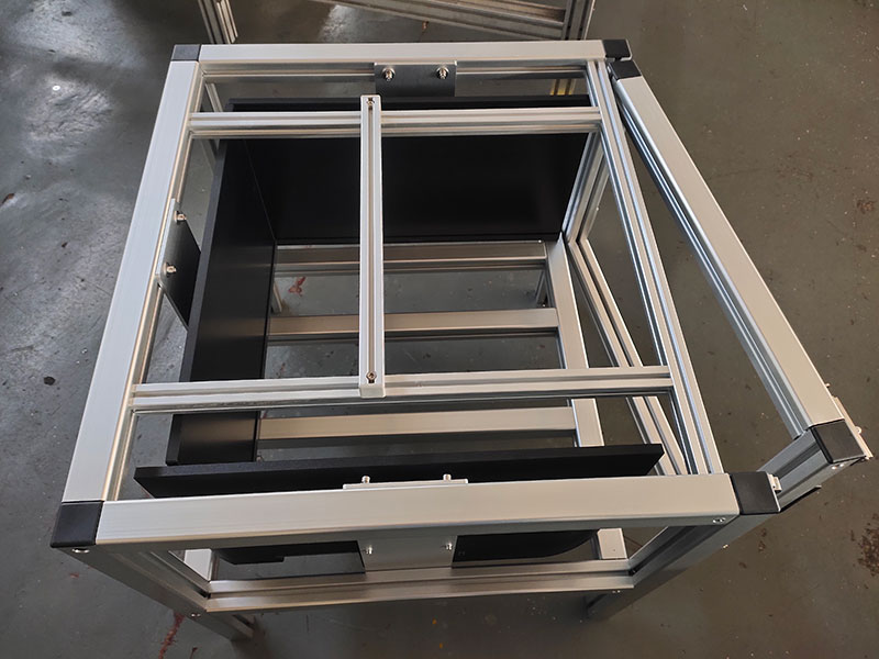 鋁型材框架制作的實驗柜,四面安裝液晶顯示器,內(nèi)部放置實驗動物,觀察動物在播放不同畫面時候的狀態(tài)。