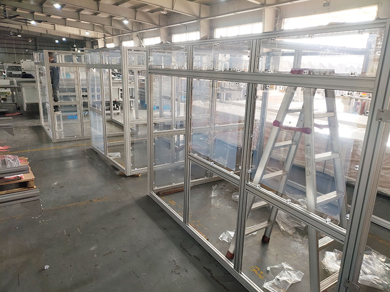 自動(dòng)化設(shè)備防護(hù)罩,機(jī)器人安全防護(hù)罩,鋁型材透明亞克力護(hù)罩,設(shè)備防護(hù)罩主要應(yīng)用于工業(yè)生產(chǎn)線規(guī)劃,根據(jù)使用需求設(shè)計(jì)搭建的安全防護(hù)系統(tǒng),可分為網(wǎng)片圍欄、有機(jī)玻璃防護(hù)、金屬板材等幾種形式,可以根據(jù)現(xiàn)場(chǎng)使用需求進(jìn)行選擇;